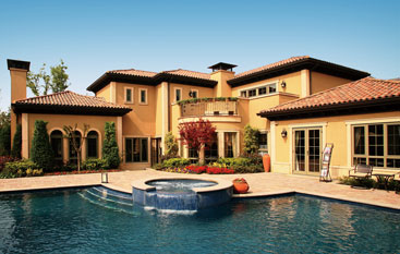 地中海風(fēng)情的意大利式別墅外墻大面積采用涂料,結(jié)合精細(xì)的石材線條,以紅瓦白墻營造出與自然合一的樸實(shí)質(zhì)感。多設(shè)置連接室內(nèi)與庭院的長廊,將室內(nèi)與室外融為一體。