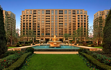 交通組織實(shí)行組團(tuán)人車分流,車行布置于外圍,或者直接從主入口進(jìn)入地下車庫;組團(tuán)內(nèi)為步行系統(tǒng),僅設(shè)置消防車道?;顒?dòng)休閑場地沿綠化帶散布其中,營造富有活力和凝聚力的公共空間。會(huì)所的室外泳池和庭院景觀,結(jié)合小區(qū)中心公共綠地設(shè)計(jì),將人的活動(dòng)融于其中。